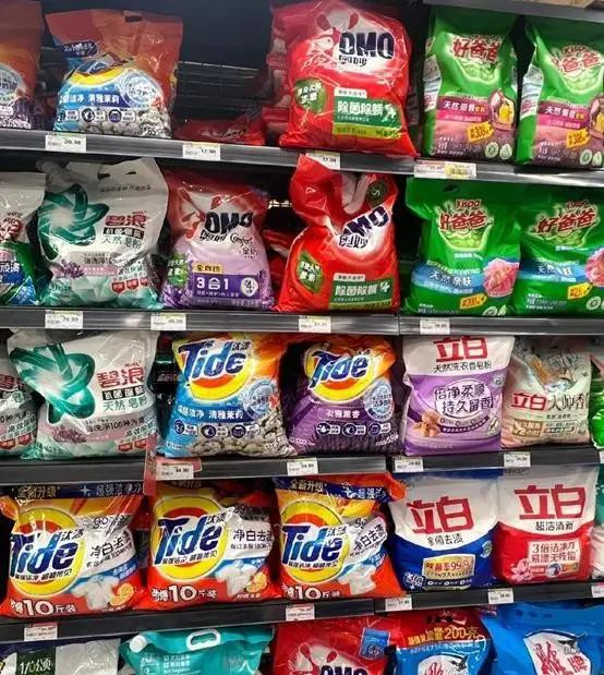以前洗衣液专区那叫一个吵杂,现时呢?货架缩水一泰半,洗衣粉、洗衣凝珠、爆炸盐反倒摆得满满当当。