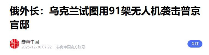 1.《俄外长:乌克兰试图用91架无东说念主机蹙迫普京官邸》2025-12-30 07:22 | 起原:券商中国