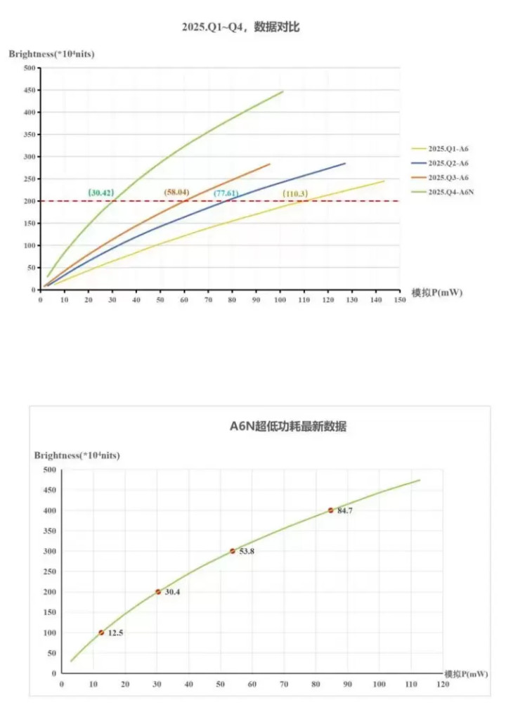 (对比2024年底的200万nits/135mW,降幅卓越66%)