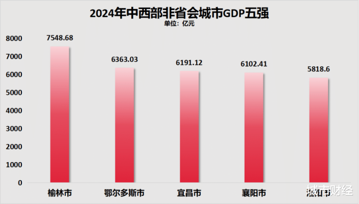 2008年榆林初次尝试突出宜昌和襄阳,但很快2009年宜昌就再度反超榆林,2010年榆林又突出了宜昌。2011年榆林突出了鄂尔多斯。