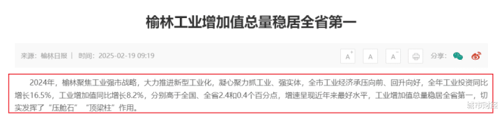 在煤炭资源加持之下,榆林除了是陕西的经济第二城除外,如故陕西的工业第一城。