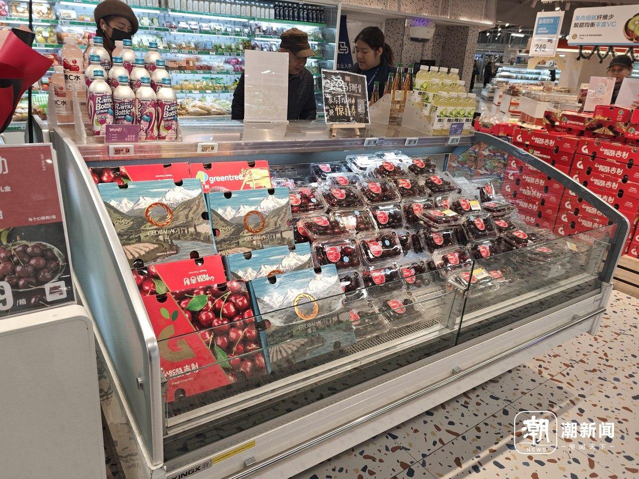杭州西湖文化广场的盒马鲜生超市,首批海运车厘子3天前上新,进口处的生果区里大促销正在进行。